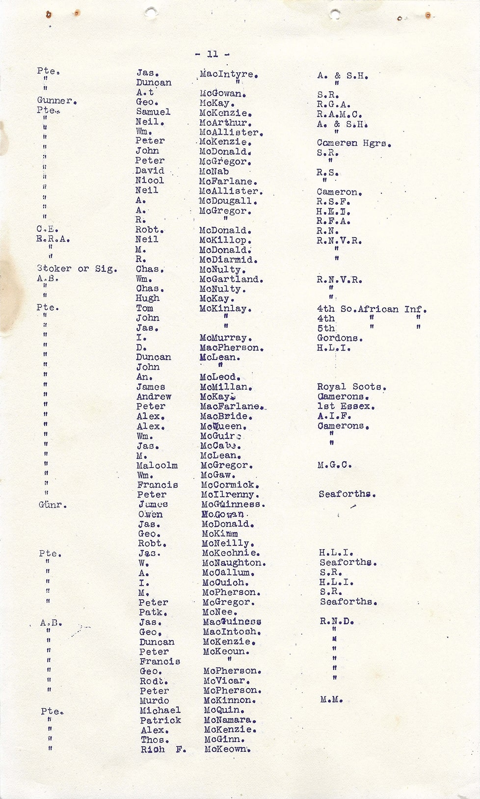 Below is War Memorial Committee member William Munro's copy of Roll of Honour containing 1122 men's names that was placed inside Govan War Memorial in 1922, a copy of William Munro's Roll of Honour was placed inside War Memorial in 2019 to replace original lost Roll.